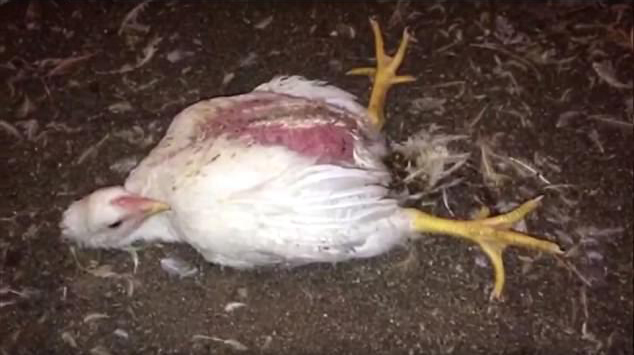 “The birds are too heavy to stand because they have been bred for breast meat and nothing else, so they spend their lives squatting. It’s like 2 toothpicks sticking out of a grape.